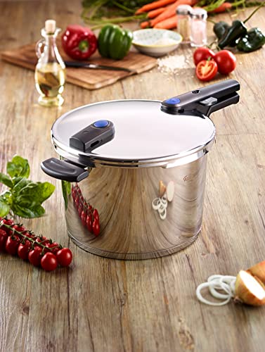 Cosa possiamo andare a dire per riassumere in breve quelle che sono alcune delle migliori qualità della pentola a pressione Fissler Vitaquick? Innanzitutto parliamo di una pentola dall'elevata capienza, ben 8 litri che vi consentiranno di preparare comodamente tantissime pietanze diverse. Quello che rende le pentole a pressione del marchio Fissler tanto consigliate è sicuramente la qualità che le caratterizza in ogni dettaglio. Oltre ad essere realizzate con dei materiali di altissima qualità, in primis un ottimo acciaio inox, le pentole presentano sempre una struttura solida e resistente che si rivela in più anche facile e veloce da pulire dopo ogni utilizzo. É vero che i costi che caratterizzano questi modelli sono piuttosto alti e che quindi inizialmente dovrete fare un grande investimento per acquistare un modello del genere, ma le prestazioni in termini di cottura saranno impeccabile e vi ripagheranno di qualsiasi cifra spesa. Inoltre il processo di utilizzo di questa pentola è comune a quello di qualsiasi pentola a pressione tradizionale, quindi non avrete problemi nell'usarla in casa. Sicura e affidabile, grazie al buon sistema di chiusura del coperchio, questa pentola è perfetta se siete alla ricerca di un dispositivo affidabile per dimezzare i tempi di cottura nella preparazione di alcune pietanze.